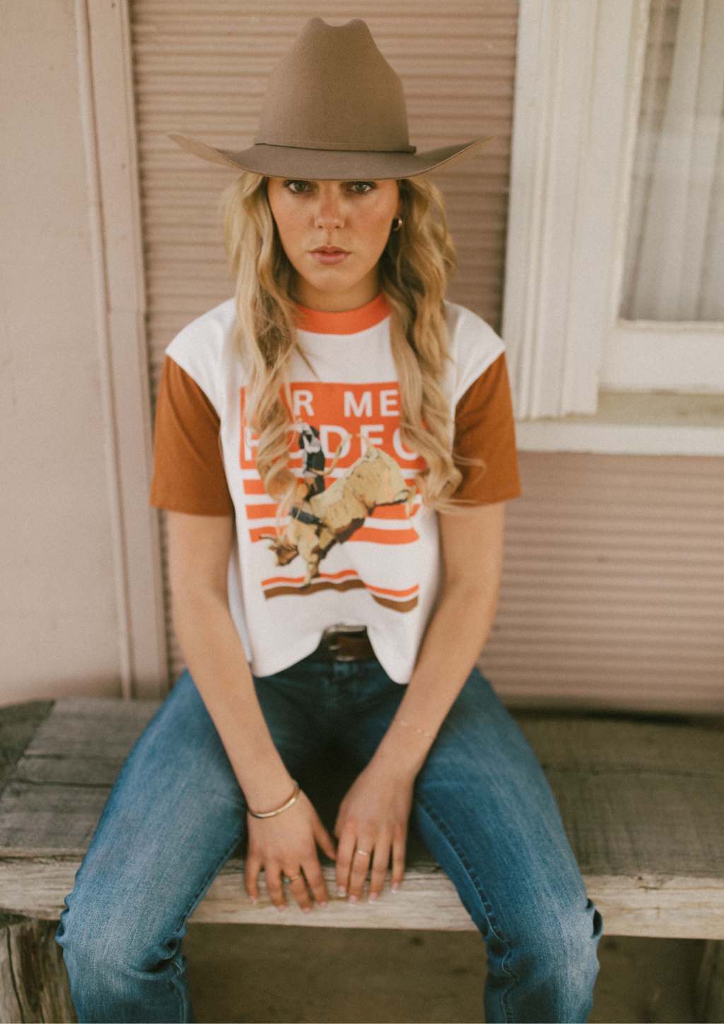 Scarlett wears size S FM Rodeo Short Cut Crew